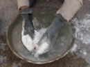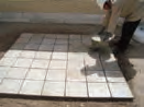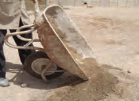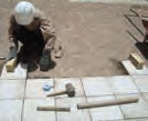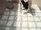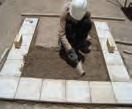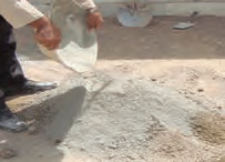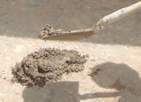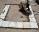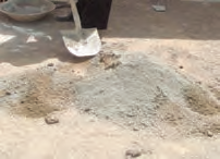 - تهیه ملات: ملات رایج برای اجرای كفسازي ماسه سیمان است که از مقاومت خوبی برخوردار است و مصرف آن سبب افزایش دوام کف می شود. نسبت سیمان به ماسه در این مالت ۱ به ۵ یا ۱ به ۶ است. با در نظر گرفتن این نسبت ماسه و سیمان را به کارگاه آورده و با استفاده از بیل آنها را بدون استفاده از آب در دو مرحله با هم به خوبی مخلوط کنید. با اضافه کردن آب به مخلوط ماسه سیمان خشک ملات را تهیه کنید. پس از تهيۀ ملات آن را به محل موردنظر برده و با استفاده از کمچه آن را به ضخامت ۲ سانتیمتر روی کف در محلي كه اولين قطعۀ موزاییک قرار ميگيرد پخش کنید. در تصاویر زیر مراحل تهيۀ ملات و ملات ریزی نشان داده شده است.