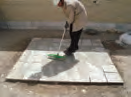 - بندكشی و دوغاب ریزی: پس از ۱۲ ساعت از اجرای کار موزاییک سطح آنها را خیس کرده و روی آنها دوغاب سیمان سفید میریزند و با تیغة پالستیکی یا جارو، بندها را پر می کنند. دوغاب سيمان از اختالط ماسة ريز دانه الك شده و سيمان به نسبت 4 به 1( 4 پيمانه ماسه و 1 پيمانه سيمان( و آب به دست ميآيد. براي تهيۀ دوغاب سيمان ابتدا مقداري آب آشاميدني را درون استانبولي بريزيد. 1پيمانه سيمان را درون آن ريخته دستكش بپوشيد، و با دست آنرا بهم بزنيد تا خوب مخلوط شود، براي انجام اين كار حتما به اندازه 4 پيمانه ماسه )خاك سنگ( را درون مخلوط ريخته و مجدداً آنرا به هم بزنيد تا مخلوط دوغاب به دست آيد. بايد غلظت دوغاب به نحوي باشد كه هنگام دوغاب ريزي اجزاي تشكيل دهندۀ آن از يكديگر جدا نشوند.تميز كردن سطح كف: در ادامه روی سطح سنگها را پودر سنگ پاشیده وبلافاصله با گونی، تمام سطح را تمیز می کنند.